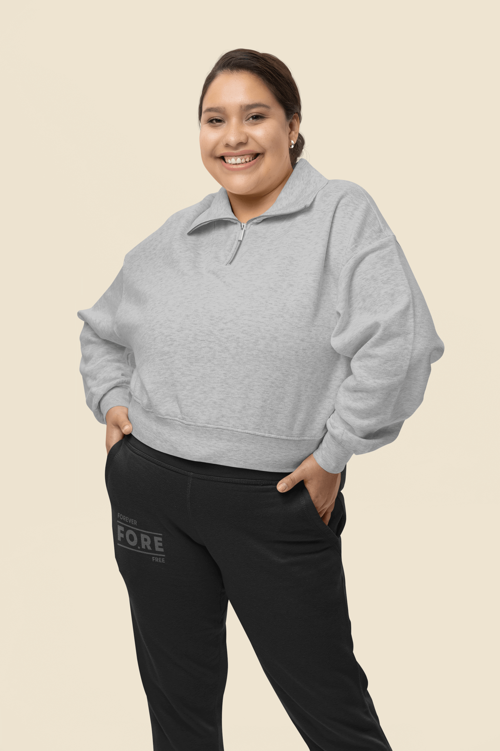 Upgrade your casual wardrobe with our stylish black sweatpants. Featuring a comfortable elastic waistband with an adjustable drawstring closure and derby ribbed at waist & ankles, these sweatpants ensure a perfect fit for all-day wear. Designed with a modern edge, they boast a bold ‘FO.RE forever free’ Logo print on the left thigh, making a statement wherever you go. Ideal for lounging, running errands, or casual outings, these trendy sweatpants are a versatile addition to any closet.