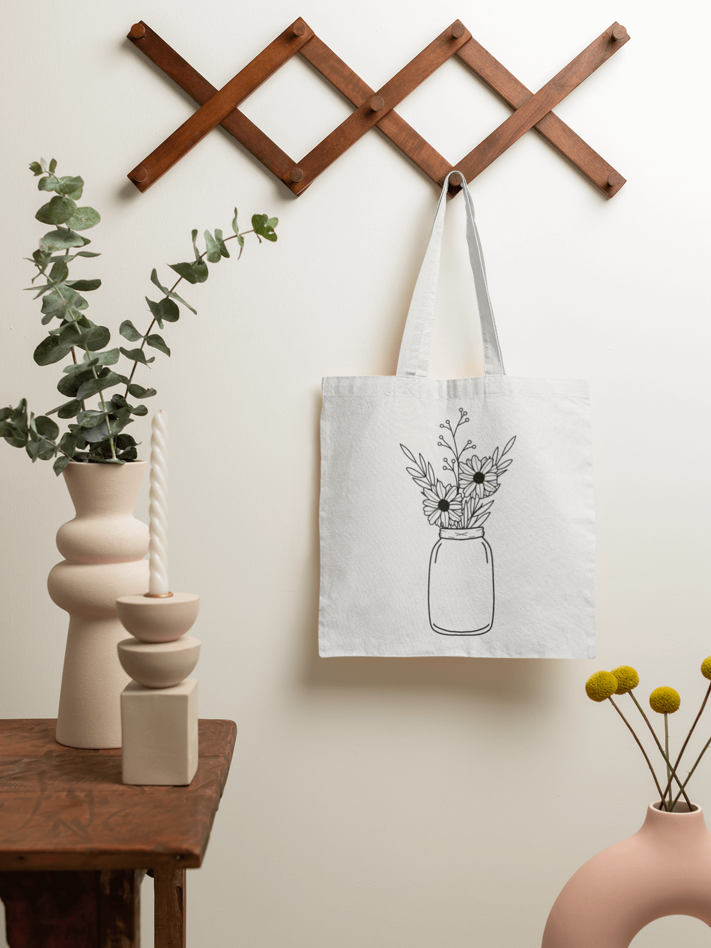 Enhance your style with our Floral Canvas Tote Bag, designed for both aesthetics and functionality. Featuring a minimalist floral print, this eco-friendly bag is perfect for your everyday adventures, whether you’re out for a casual stroll or running errands. Crafted from durable canvas material, it offers plenty of space to comfortably carry all your essentials. With its natural color palette, this tote is a versatile addition to any wardrobe, effortlessly complementing a variety of outfits. This tote is your go-to accessory for combining sustainability with chic elegance.