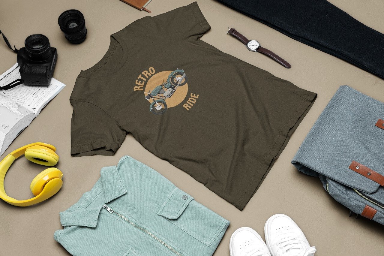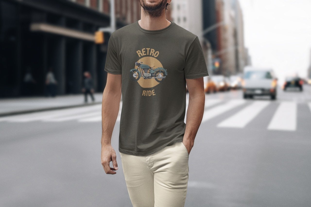 Unleash your inner rebel with our Retro Ride T-Shirt. This stylish olive green tee flaunts a vintage motorcycle graphic accompanied by the bold ‘Retro Ride’ slogan. Perfect for casual outings or as a statement piece, this t-shirt offers both comfort and cool. Available in Olive Green in various sizes, it’s a must-have for every motorcycle enthusiast or lover of retro fashion.
